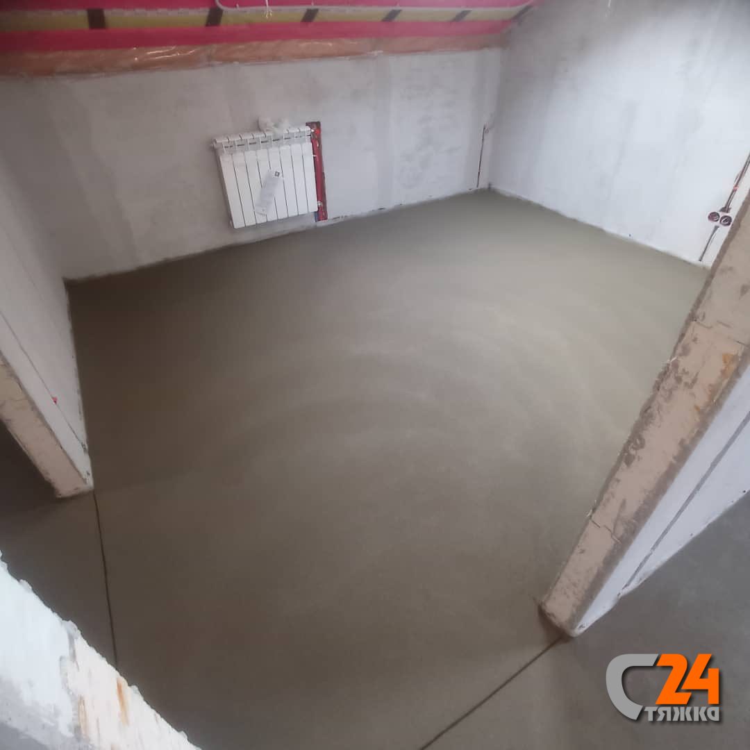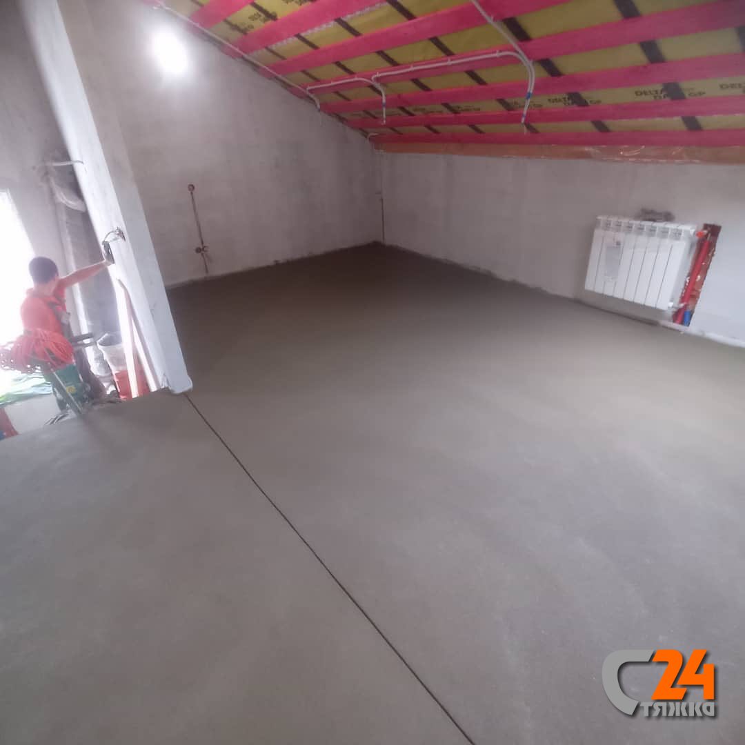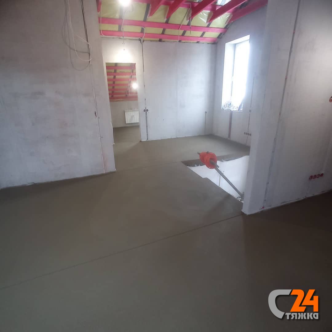 Механизированная цементно-песчаная стяжка по теплым полам в коттедже. В этом поселке выполняем аналогичные работы уже в шестом по счету таун-хаус.