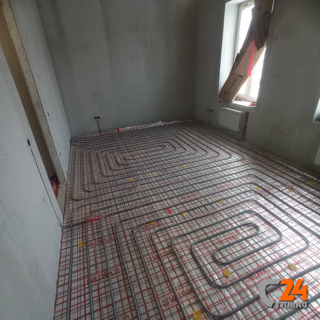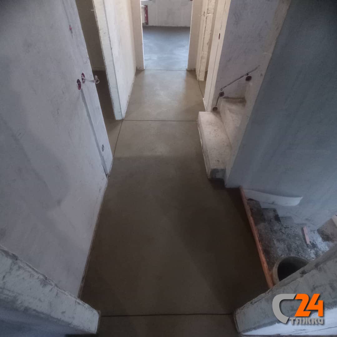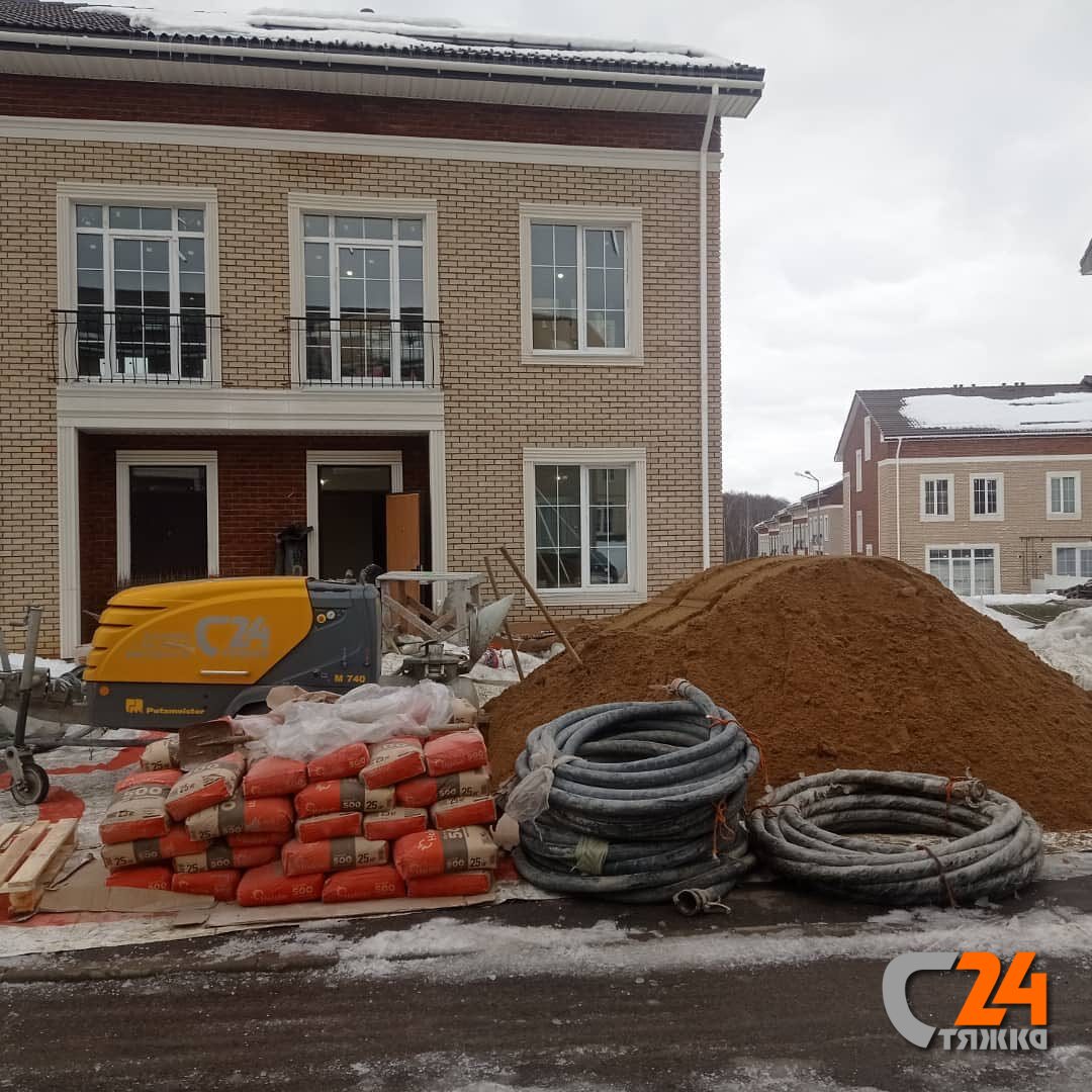 Механизированная цементно-песчаная стяжка по теплым полам в коттедже. В этом поселке выполняем аналогичные работы уже в шестом по счету таун-хаус.