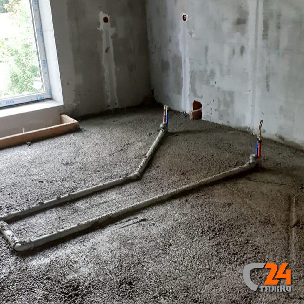 Выполнены работы по устройству подстилающего слоя из полистиролбетона в частном доме. Продолжение в виде стяжки следует после укладки контуров теплого пола.