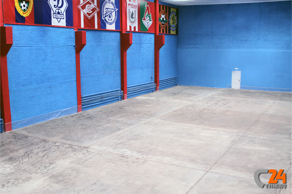 Полусухая стяжка пола повышенной марочной прочности в помещении спортзала