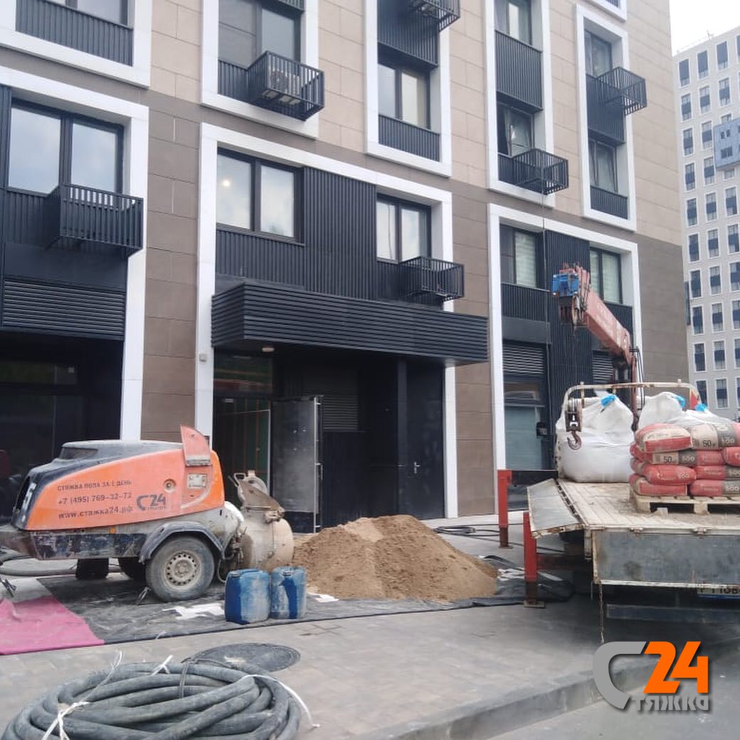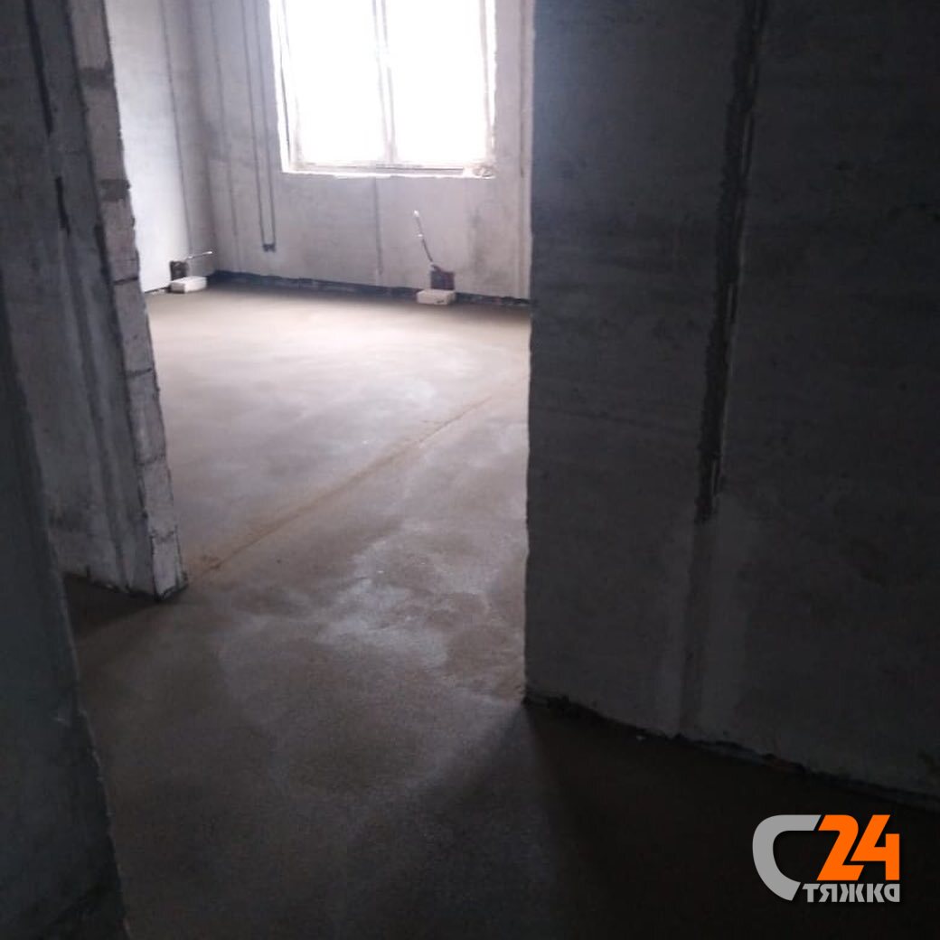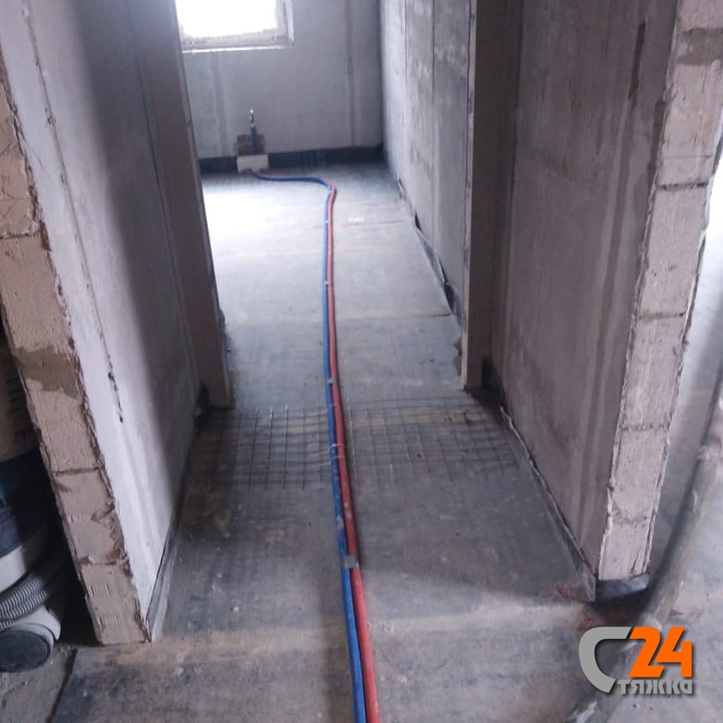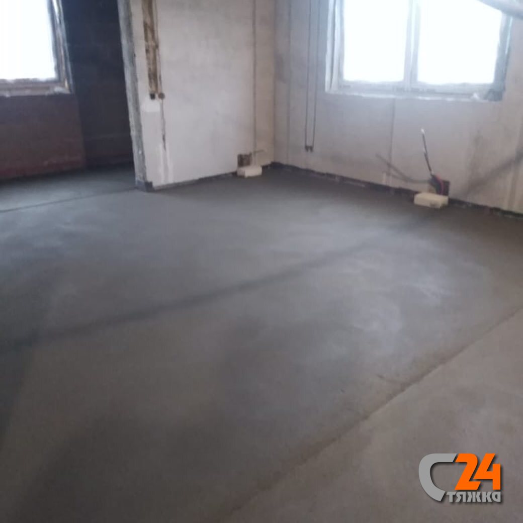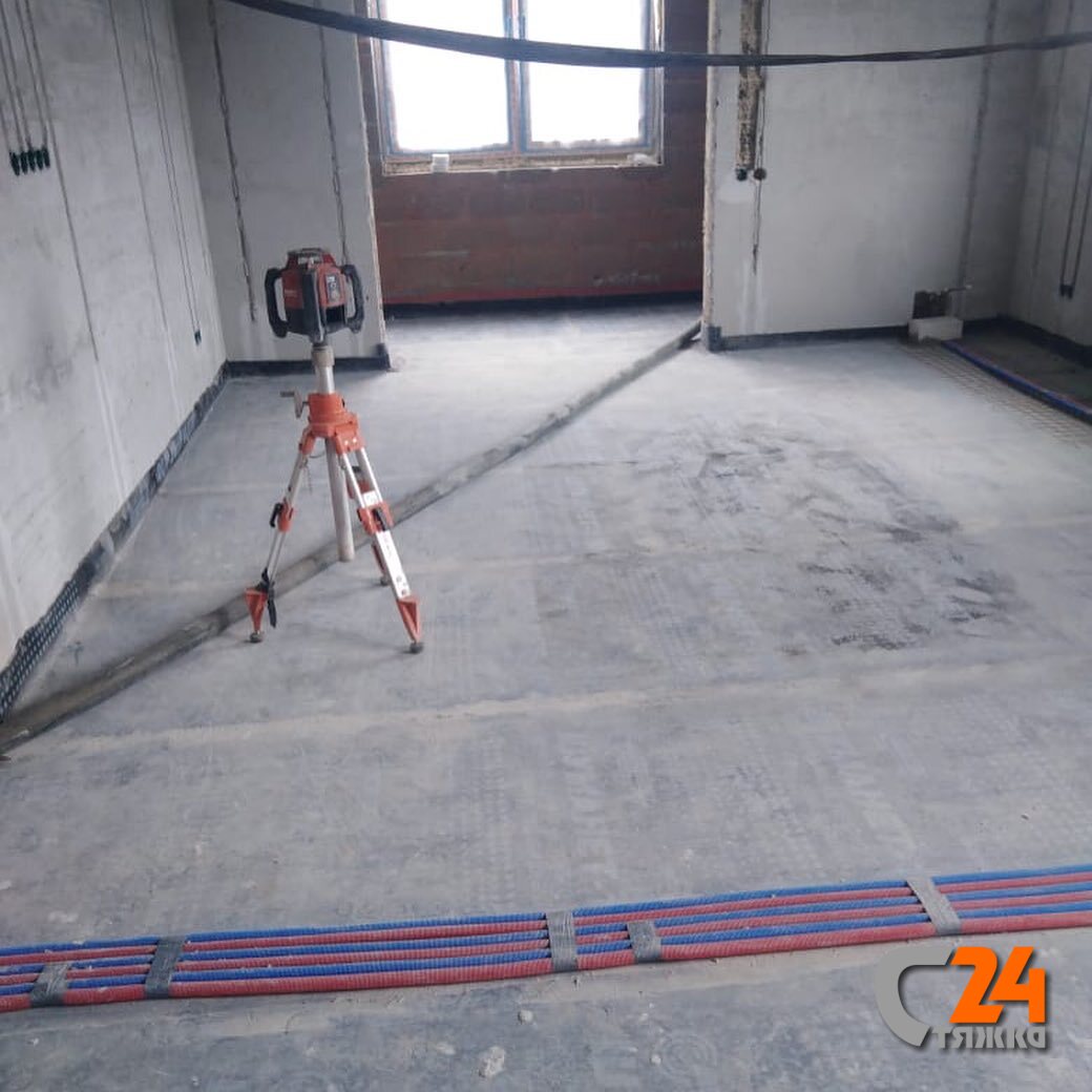 Выполнена стяжка пола в квартире по предварительно уложенной шумоизоляции.