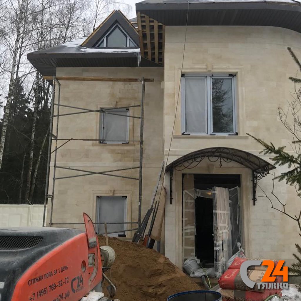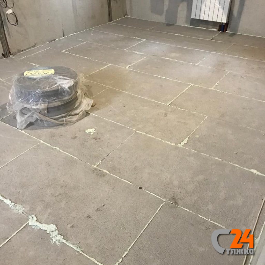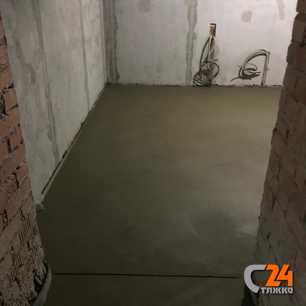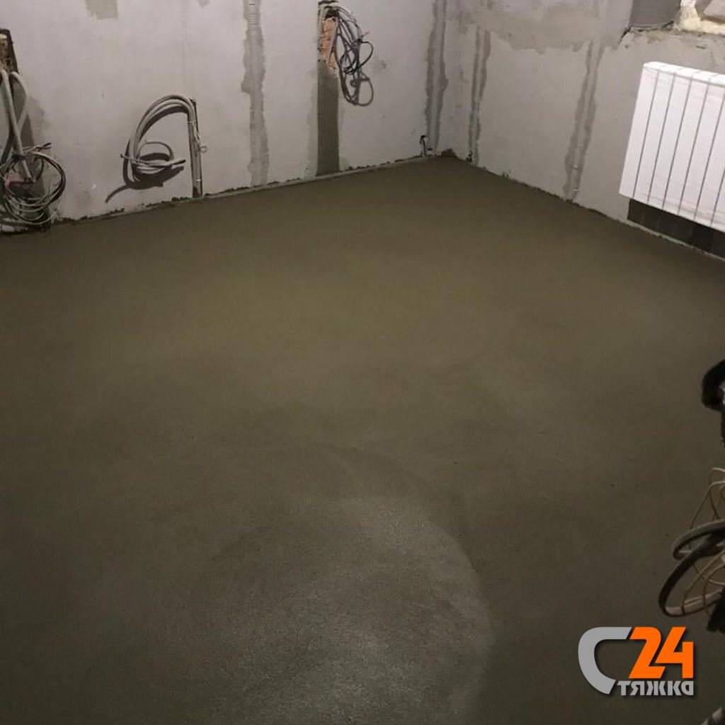 Полусухая цементно-песчаная стяжка механизированным способом по подстилающему слою из плит экструдированного полистирола в частном доме.