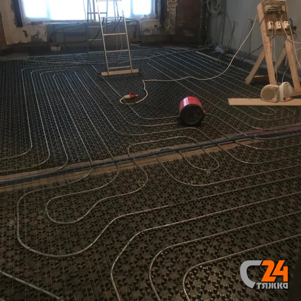 Сделали стяжку по теплым водяным полам в большом-большом частном доме.