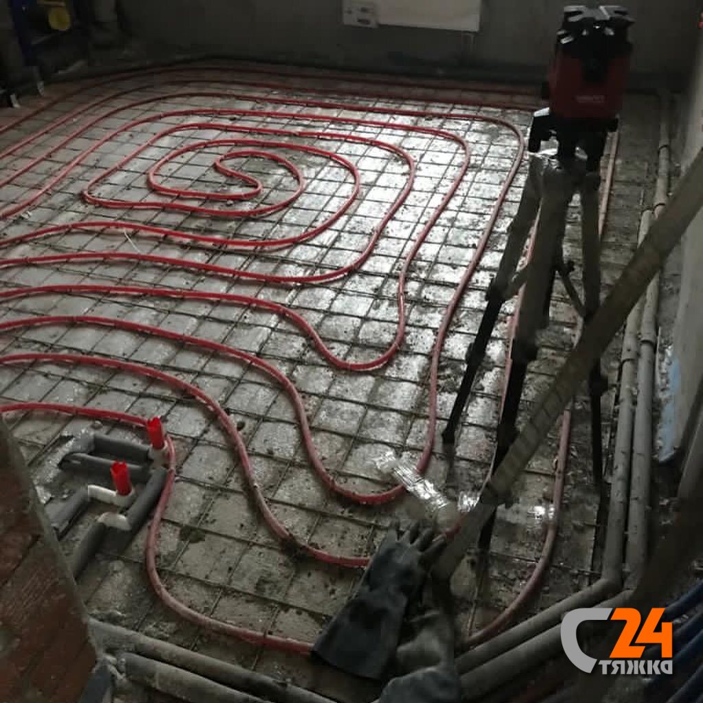 Выполнены работы по устройству стяжки по теплым полам в частном доме.
