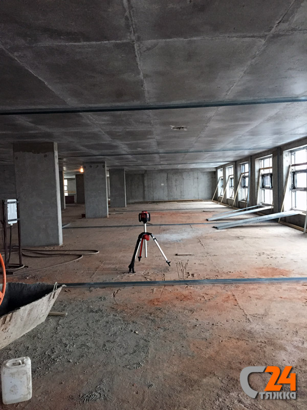 Приступили к выполнению стяжки пола с устройством шумоизоляции в гостиничном корпусе на ВТБ «Арена Парк», метро Динамо. Площадь выполнения работ составляет 16850 кв. м. Стяжка пола под плитку, паркет, ковролин, полимерные покрытия, выполняется в гостиничных номерах и общественных зонах. В гостиничных номерах, в зонах расположения душевых кабин, стяжка пола изготавливается с понижением согласно техническому заданию (см. на фото).