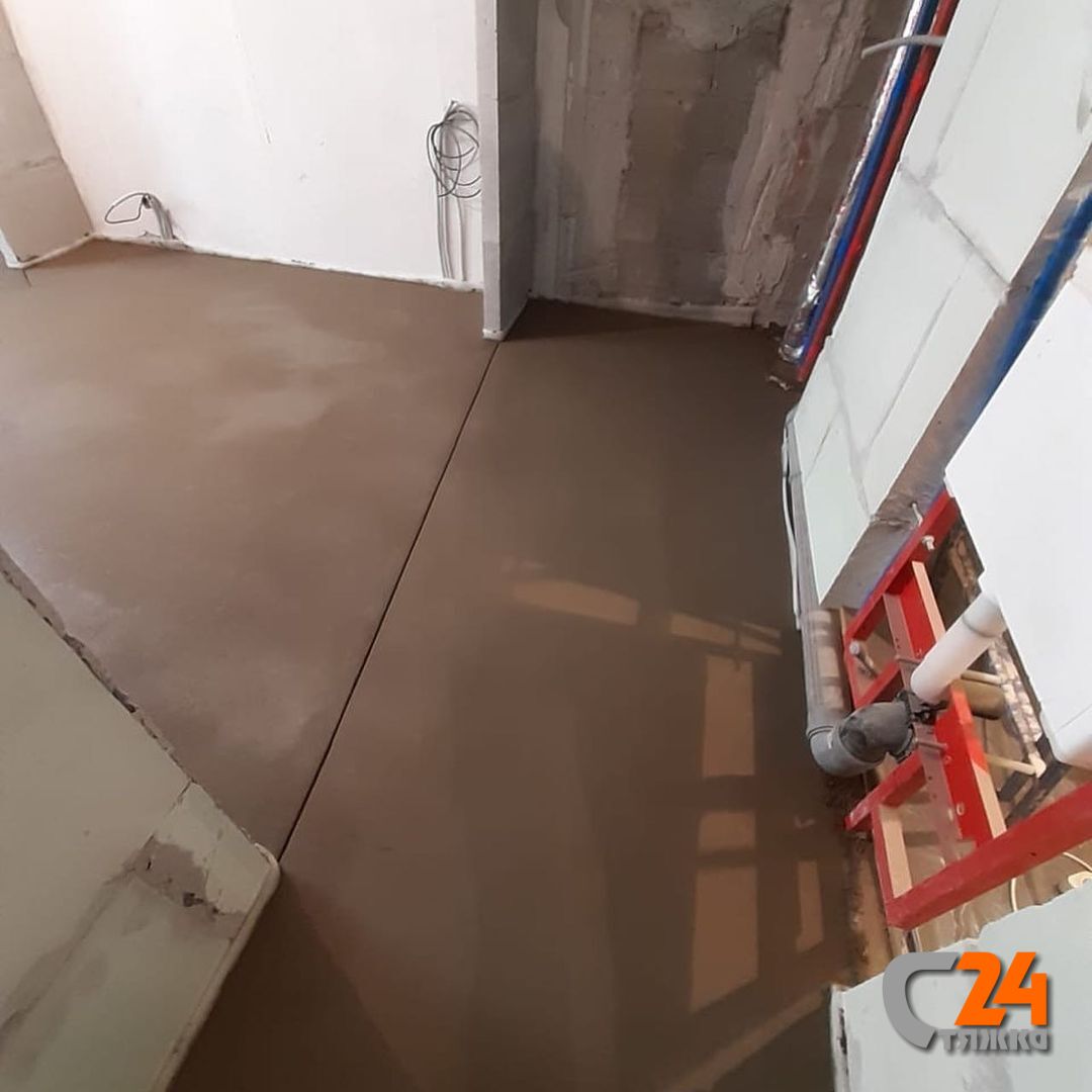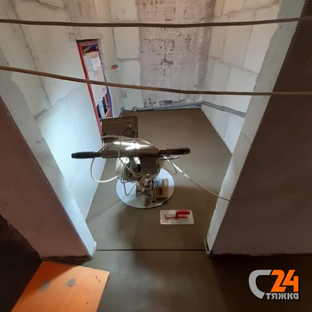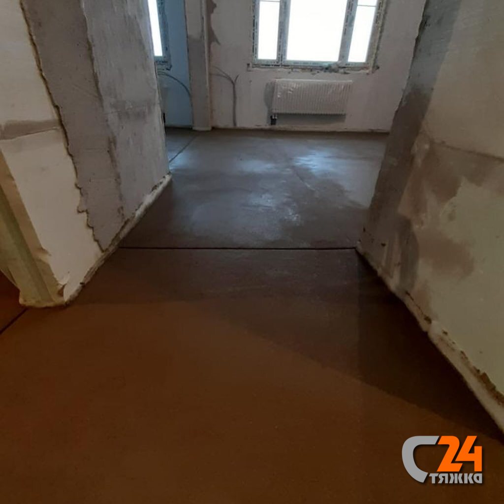 Сделали стяжку в квартире из пескобетона, так как технически был невозможен механизированный способ устройства стяжки, 100 м2, 1 день.