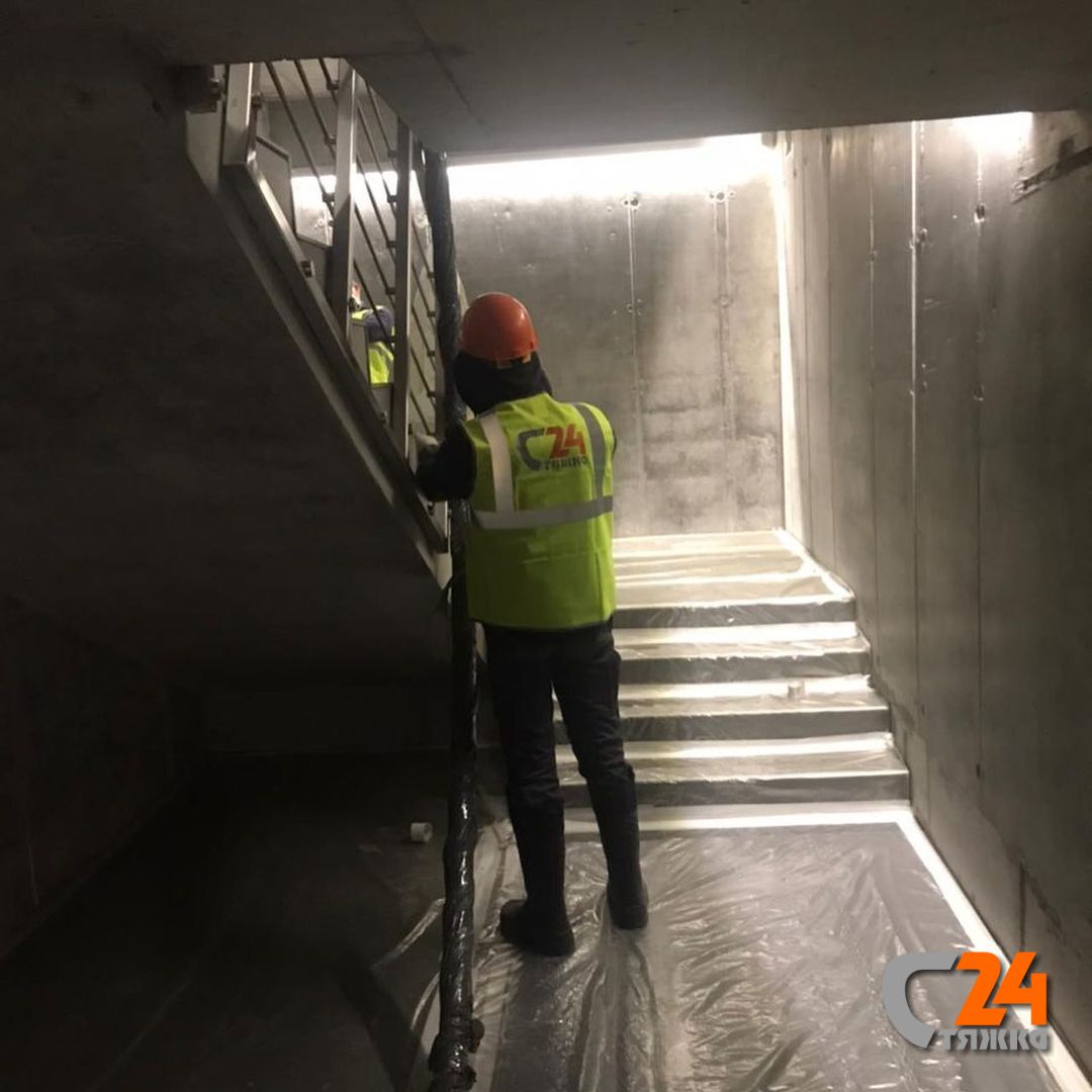 Завершили работы по устройству стяжки и подстилающего слоя из полистиролбетона в офисном центре. Локально толщина конструкции доходила до 700!!! мм, см. фото. Повторите кто сможет))