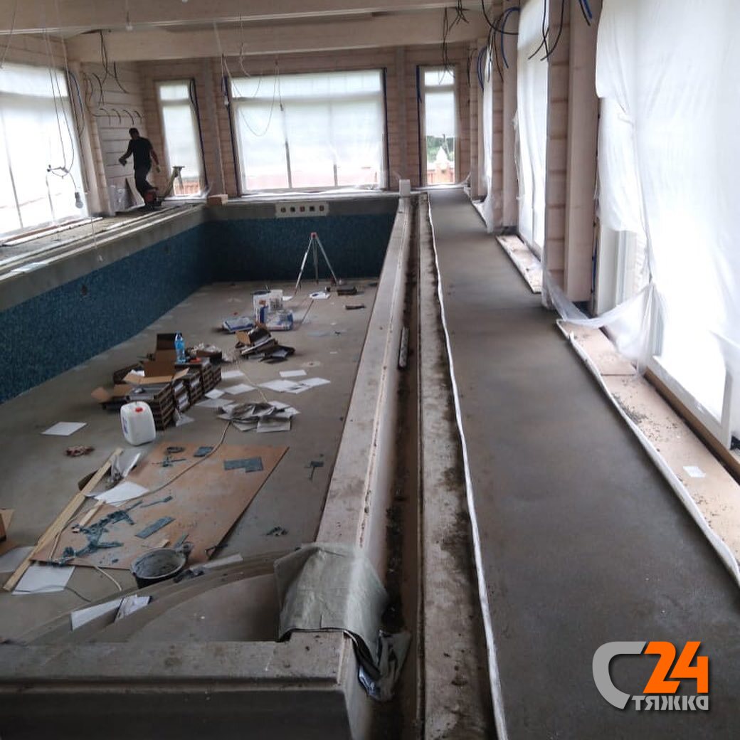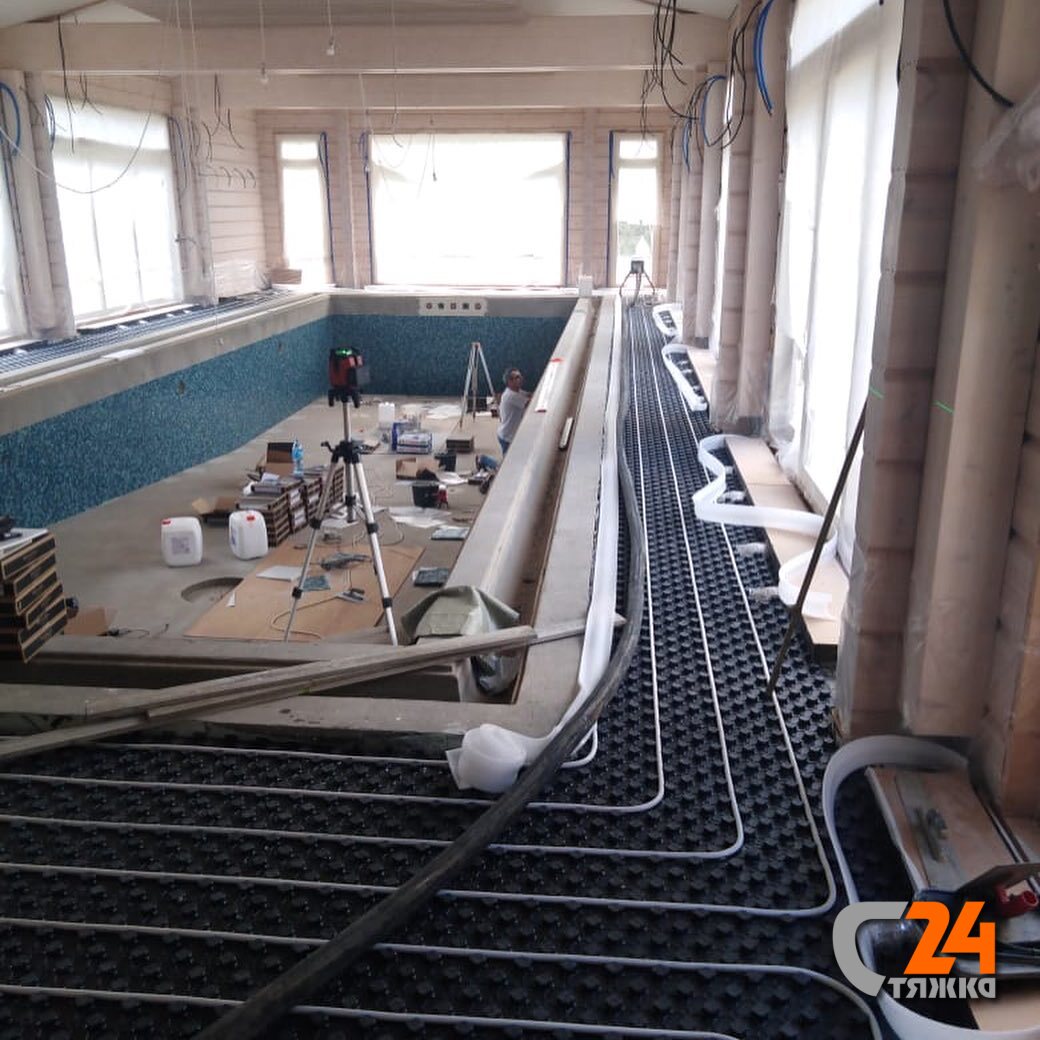 Выполнена стяжка в зоне бассейна по теплым полам в частном доме из клееного бруса. Заказчик-лидер деревянного домостроения Honka, наш многолетний партер.