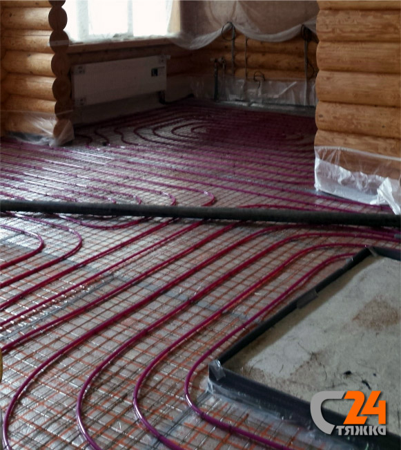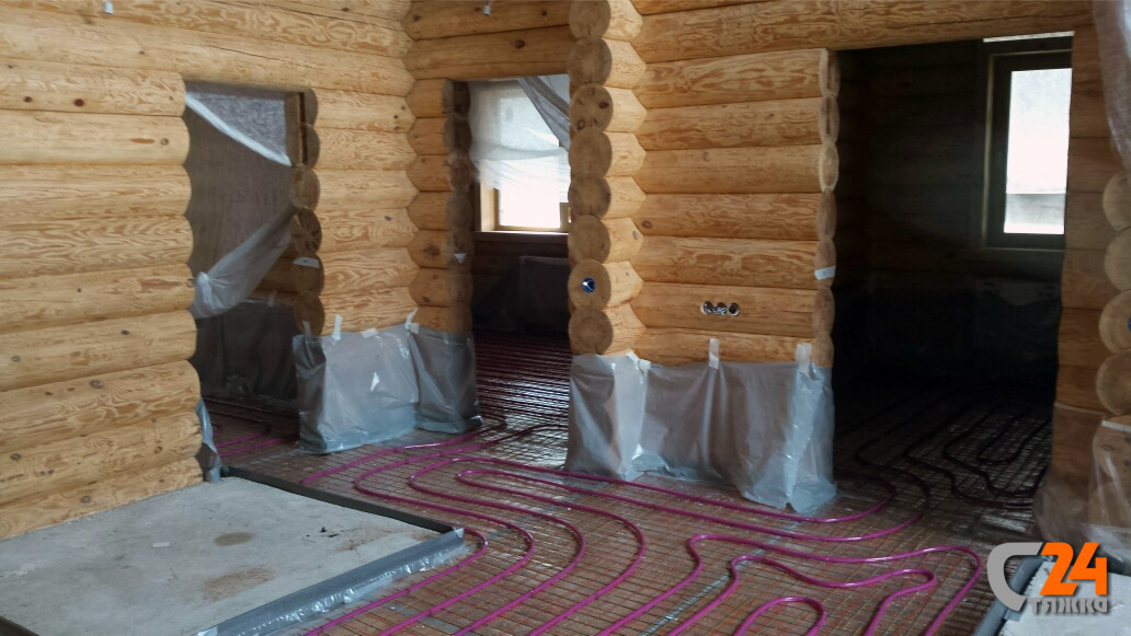 За один день выполнена стяжка пола в деревянном доме по системе водяного обогрева полов на площади 103 кв. м.